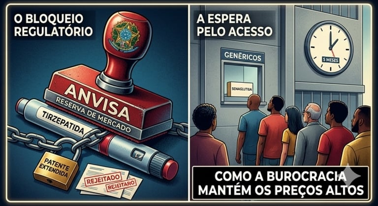 No entanto, a Anvisa impôs novos requisitos técnicos de estabilidade e um ritmo de análise que trava o lançamento dos genéricos nacionais. Atualmente, há mais de 17 pedidos na fila, mas a previsão é que nenhum chegue às prateleiras antes do final de 2026. Esse hiato garante à detentora da marca original o chamado monopólio de fato pós-patente, ou "extensão branca", gerando lucros bilionários enquanto o cidadão espera pela queda de preço que nunca chega.